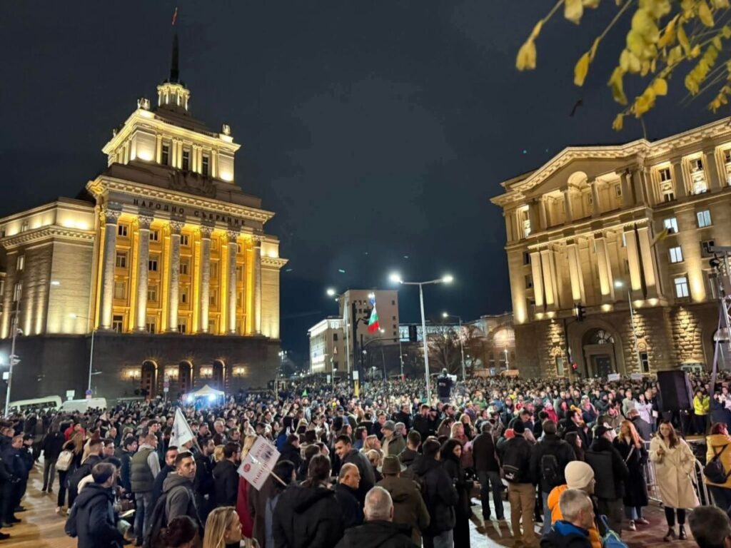 Хиляди униформени от цялата страна пазят Бастиона на Пеевски – бившия Партиен дом, докато над 20 хиляди души протестират отвън срещу властта и бюджета. Триъгълникът на властта отново пламна с протести за първи път от пет години насам, с дразнителят е добре познат. Няма партийни плакати и знамена, но има много български и няколко европейски флага.